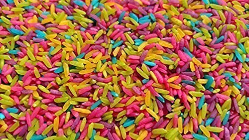 a. Colored rice: you can easily make it adding food color to uncooked rice and keep it for drying. You could mix up different colors and mix it all up for more fun. Your little one would love to feel the texture of rice and spill it all around, put it over their head, throw it around, walk on it and even try to eat it. Its better to be around while you give it, because you don’t want them to eat it. Though its not toxic and can have a safe play. Slowly after exploration, we can help them to fill in a tumbler or cup and transfer and play. They will enjoy.